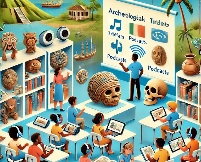 Archéologie Caraïbes propose une variété de ressources adaptées à tous les âges : des podcasts captivants pour petits et grands, du mobilier archéologique manipulable en 3D, ainsi que des textes multilingues rédigés par des archéologues. Ces outils sont conçus pour enrichir votre enseignement et offrir à vos élèves une immersion dans l'histoire et le patrimoine caribéen. Nous avons besoin de votre expertise et de vos retours pour aller plus loin : aidez-nous à créer la valise pédagogique qui répondra parfaitement à vos besoins en classe.